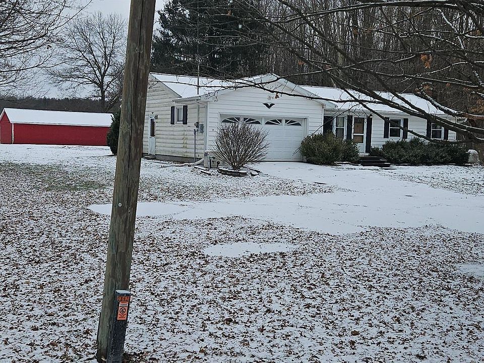 Welcome Home! Remarkable 10 acre sliver of country heaven. Half wooded with small pond, hunting blind and stands. Picturesque setting with 40x25 livestock barn and 30x24 pole barn, chicken coop and 2 car attached garage. Located 10 minutes from charming historic downtown Marshall. Sprawling ranch with living room, family room with cozy fireplace and doorwall to deck, large open kitchen, 3 bedrooms, primary lav and full basement. The home has great bones, just waiting for new owner to give it a loving touch. At this price you have plenty of room to build sweat equity and memories by updating this gem to your dream home. In 2015 seller installed a new roof, furnace, CA, sump pump, Generac generator and water softener. Roll up your sleeves and put a polish on this one.