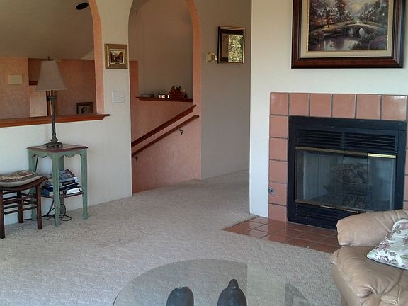 Tile and carpet flooring through out home. Spacious living room with fireplace and separate dining room. Open kitchen with separate eating area and breakfast bar. Master bedroom located upstairs with walk in closet. Two more bedrooms downstairs. Kitchen area opens up to a great deck. Walking trail behind the house leads to a basketball court. Beautiful views from every window. Two car garage with parking slab.