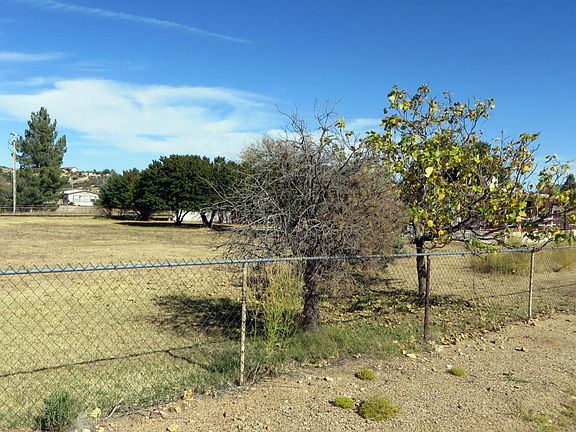 This property being sold with parcel 202-21-127 for total of .91 acres.Level lot w/mature fruit trees; garden area on 2nd parcel. Home in good condition with large covered front porch plus back covered patio. Kitchen includes range and fridge plus ample cabinets and breakfast bar. Inside laundry w/washer and dryer. Nice carpeting; Bath has been updated w/tile floor and oak cabinets. Home has metal roof. Seasonal attached room addition plus storage room with electric power has outside access..ideal for freezer, extra fridge or canned goods. Detached garage & workshop. Completely fenced for child and pet safety. Room for RV through double gate. Mountain views. Front porch will require repairs. Rural scenic location between Prescott & Wickenburg.
