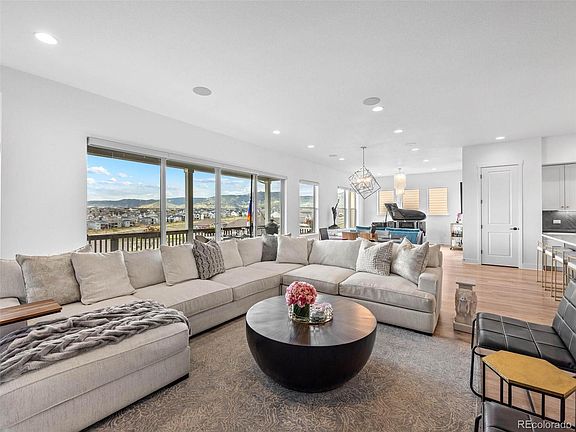 SIGNIFICANT PRICE REDUCTION - INCREDIBLE VALUE. A breathtaking blend of functionality and craftsmanship this semi-custom built David Weekly home is one of a kind in floor plan and finishes. It offers an exceptional location across from the wildlife refuge with unobstructed views of the Flat Irons. An inviting designer kitchen is highlighted by a vast island, quartz countertops, eye-catching tile backsplash, custom light fixtures, double pantry, soft close drawers and high-end appliances and adjoins the great room and eating space, with access to the spacious outdoor deck. The main level primary suite offers a tranquil retreat with a jewel toned whole wall wainscot which creates a focal point and gives warmth to the space while the sumptuous primary bathroom provides customized cabinetry and designer fixtures throughout. An additional bedroom and office with full bathroom, laundry and designer powder room complete the main level. The walkout lower level embraces the same warm and relaxed yet sophisticated aesthetic and enjoys spacious rooms with large windows that bathe the interior with natural light. Ideal for gathering with family or friends, the custom-made bar area and large patio and yard with bocci ball court are an entertainer’s delight. With access to 13+ miles of trails, 5 parks, 2 swimming pools and fitness centers, and conveniently located to Golden, Boulder and Denver, this is the finest in Colorado living.