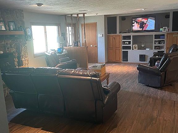 Beautiful, total electric energy efficient (last years bill avg. $232 mo.)four bed room home (could be 5) 2 3/4 baths. Large rooms. Three wood burning fireplaces all with inserts. Large work out or game room. Sauna. Nice patio. 30'x 50' garage. 36' x 40 shop wired for welding. 30' x 50' hay barn with concrete floor. Setting on 72 acres aprox. This land is a sportsman's dream with lots of wildlife. Or have your own horses, cattle, or just go for long walks.