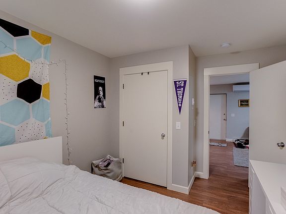 Beautiful 4 bed 2 bath apartment 5 blocks to St Thomas and about the same to Macalester. Open concept kitchen/livingroom with new kitchen, quartz countertop breakfast bar, high end stainless appliances. Nicely tiled baths one has a heated floor apartment has central A/C. Good sized bedrooms some off street parking and no parking permits required at this location.