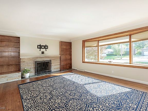 Fantastic 4 bedroom, 1.5 bath ranch home on a very desirable Lyndhurst street. This house has it all, and the convenience of a great location close to schools, shopping, parks and recreation. Beautiful hardwood floors throughout the first floor; ceramic tile in the lower level. The family room has an inviting wood burning fireplace with built in wood bookcases on both sides, and a large bow window, which provides great natural light throughout the day. The dining room has space for a nice sized table that could be easily be extended for those large family gatherings. The updated kitchen boasts KraftMaid dark wood cabinets, granite countertops, stainless steel appliances (brand new 2024 range, fridge and microwave, 2021 dishwasher), ceramic tile floors and a built in wine rack. The sunny eat-in space could also be used as an office space. There is an updated half bath with pedestal sink for your guests. The home offers 3 nicely sized bedrooms on the main floor that can each accommodate queen or king beds, all with gleaming hardwood floors and ample closet space. The full bathroom has granite counters, a tile floor, and a huge tub shower with a wifi enabled fan. The large attached garage (with room for your tools and toys) leads into a bonus room that could be used as a mudroom, toy room, office, exercise room... you decide. The finished basement is huge; a main room with fireplace, which can be used as a playroom or another social space; an additional bedroom for guests or a teen; a fantastic bright laundry room with utility sink and loads of cabinet storage, and a workroom with workbench. The home has easy low maintenance landscaping, and the backyard is level and flat; just waiting for your play set, garden, or pool! Furnace is 2012, Hot water 2020, Anderson storm doors, replacement windows, new garage door opener. Come see all this home has to offer; you won't be disappointed!