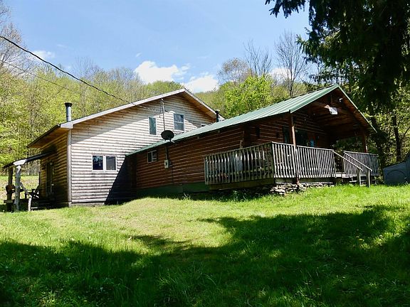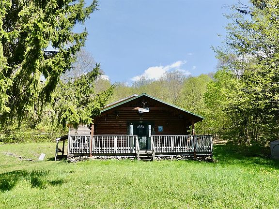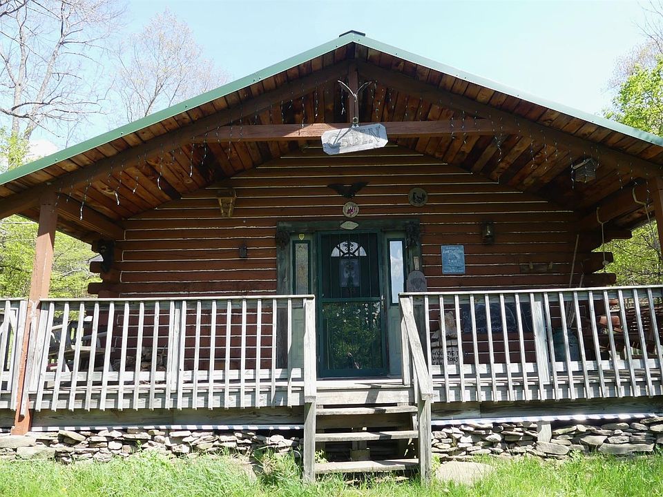 OFF THE BEATEN PATH. Originally a 2 bedroom log cabin, the house was added to in 2004 with a new kitchen, new bath and loft bedroom. Also, a poured concrete foundation with full cellar under the addition. There are wood floors, cathedral ceilings, impressive custom woodwork including the kitchen island and the staircase to the loft. A wood-burning stove sits on a stone hearth in the living room and there is a pellet stove in the basement. This home is located on Dingle Hill at the top of Davis Hollow Rd.