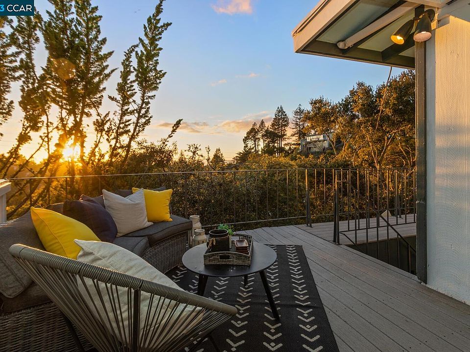 This Montclair Gem offers gorgeous views of Bay, City lights & Mt. Tam! Take the Montclair “steps” down to Montclair Park, the Elementary School (Great School Score = 8/10 in 2022) & to charming Montclair Village w/ its many restaurants, shopping, coffee shops and an incredible weekly Farmer’s Market. A touch of midcentury modern style, this home features spacious rooms & an open floorplan. Spacious Eat-in Kitchen with stunning views and a cozy Family room (or Office?) adjacent to the Kitchen and expansive Living Room. Enjoy gorgeous sunsets from the Living Room or multiple outdoor spaces including a covered deck area accessed from both the Front Deck & the Kitchen, and a private tiered Backyard to really soak in the views. Bedrooms are located on the upstairs level. A huge Primary Bedroom w/ ensuite and wall of windows offer the best views in the house. Updated bathrooms, flooring, paint, carpet, & lighting. Two additional spacious bedrooms, one with its own private entrance accessing the back deck. A separate Bonus Room (office, yoga or meditation studio, even a private & separate space for teens) on the first level next to the oversized carport. With its close access to world-class hiking trails and bike routes, BART, the freeway and shopping this property is a must see!