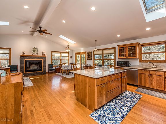 Looking for secluded private location. Here it is. Wonderful home located on private lot facing open space and close to park. Large open living room with cathedral ceilings, powered skylights and many windows allowing streaming light into the huge room including a wood-burning fireplace. Beautiful updated stainless steel and granite counters in oak kitchen open to living room. Large island. First floor master bedroom, family room and office. Two bedrooms on second floor with multiple skylights. Huge basement with roughed in bath. Home inspection report upon request. Easement agreement available upon request. Water proof warranty upon request. Large lot with expansion possibilities.