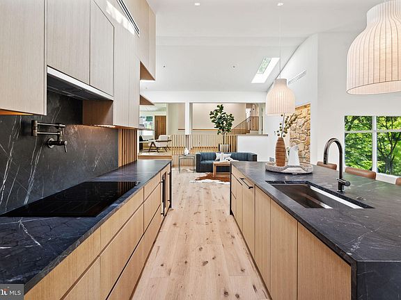 Step into the timeless elegance of this Mid-Century Modern masterpiece nestled on 4 acres of picturesque landscape in Villanova. This architectural gem seamlessly combines the best of retro design with modern amenities with the full rehab of the existing home and new addition by the builder, creating a home that exudes sophistication and style. There is nothing like this available anywhere on the Main Line! Pickleball/Sport court, 4+ car garage, additional "guest house/artist's suite" detached from the main home and a custom designed floor plan with the best finishes and expert craftsmanship. The main residence boasts the iconic clean lines and open spaces characteristic of Mid-Century Modern design. Floor-to-ceiling windows flood the interiors with natural light, framing breathtaking views of the surrounding greenery. A spacious living area with a fireplace becomes the heart of the home, offering a cozy retreat for relaxation. There is a large addition to this home that is completely new construction. With six bedrooms and four and a half bathrooms, this home offers ample space for both relaxation and entertainment. The large primary suite is a haven of tranquility, featuring a spa-like full bathroom with a soaking tub, sunlight drenched shower and beautiful fixtures, the perfect retreat after a long day. Step into culinary excellence with this luxurious chef's kitchen, where form meets function in a symphony of sophistication. Every detail has been carefully designed to elevate your cooking experience to new heights. The kitchen is adorned with high-end finishes, from the gleaming countertops to the custom cabinetry that offers both style and ample storage space. The expansive island, with double waterfall counters, is a centerpiece of culinary artistry, and provides a generous workspace for food preparation and casual dining. Situated on a sprawling (+/-) 4-acre lot, this property is a true oasis of privacy. complete with a tranquil waterfall, and a charming stone bridge that adds a touch of romance to the property. Enjoy the tennis court, and host your very own pickleball tournament or retreat to the expansive detached garage with space for 4+ cars to work on your favorite hobbies. The possibilities are endless with the versatile guest house on the lot, ready to be transformed into a guest suite, office, gym, art studio, or whatever suits your lifestyle. Embrace the serenity of this private and secluded estate, where every detail has been carefully curated for a life of comfort and indulgence. With endless possibilities at your fingertips, this Villanova residence is more than just a home; it's a canvas for your unique vision of luxury living. Taxes and square footage are the responsibility of the buyer to have verified. All square footage is above grade and does not include the "guest house".