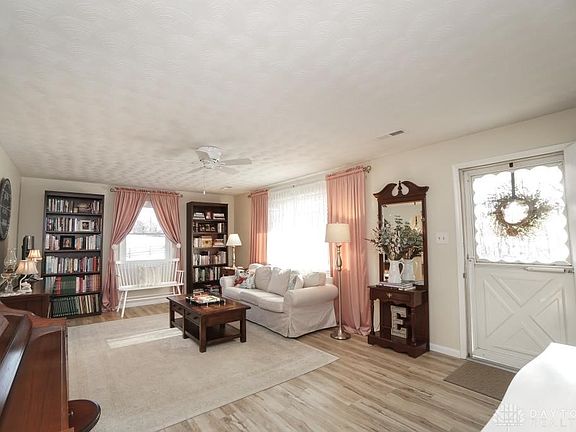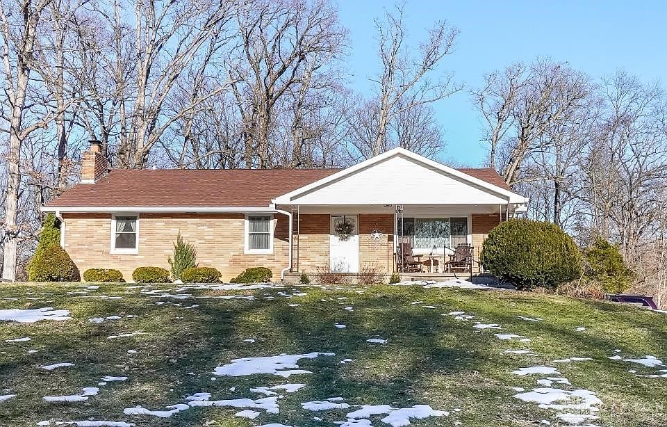 Freshly remodeled brick ranch with full basement sits on a gated 10.5 acres, minutes from I-71. This home and acreage is ideal for a rural lifestyle that can include farm animals, hunting, 4-wheelers, gardens or just having your own quiet space. 4 spacious bedrooms & 2 full updated baths - this home has been tastefully renovated from top to bottom. All new LVP flooring, stunning open eat-in kitchen w/ quartz island & counters. Off the kitchen is your 3 season room overlooking a spectacular wooded valley. Other features include: large 2 story barn with water/electric, fenced pastures, chicken coop, stocked pond, circle driveway, fenced yard. Nice trail system throughout. Other recent updates include - newly installed central HVAC, new windows, gutters, new Water Heater and much more. See attached feature & update list.
