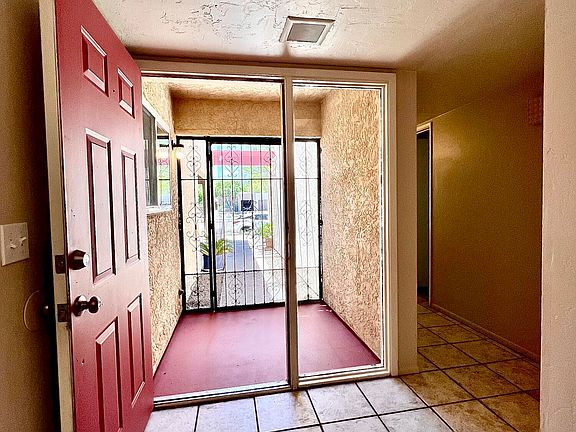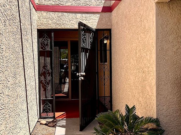A charming 3 bedrooms, 2 baths home in great central location. No HOA dues. Tiled floors throughout the house. Primary bedroom with two large closets and sliding door open to the specious enclosed patio. Largegreat room with dining area next to the bright kitchen. Skylights, window next to sink, corian counter tops, new refrigerator, range and more make it a wonderful kitchen to enjoy. Wrought iron security doors for all entry doors to the house. Roofhas been newly recoated. Low care desert landscaping. A rare 3 BR, 2 BA home for the right buyer in the subdivision.