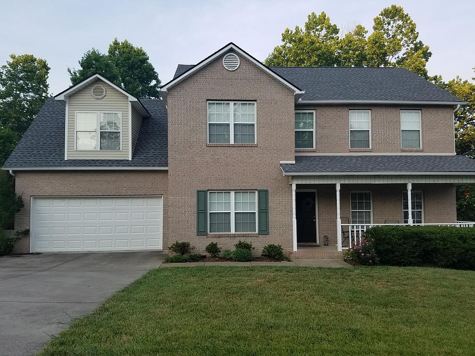 Convenient to Pellissippi, Hardin Valley schools, and Oak Ridge. This house is zoned for Hardin Valley schools. First floor has a medium sized bedroom or it could be an office, kitchen off of the garage with hard wood floors, and an eat in kitchen with hard wood floors. New countertop with granite shown in photo. New kitchen cabinets and countertops. Living room is open off of the dining room. Great room is large and has hard wood floors. There is a full bathroom down stairs and a laundry room. There is also a laundry hookup upstairs in the hallway, and can be used as a second laundry area or an extra closet. The second floor has four bedrooms. Master bedroom has a nice sized garden tub and separate shower, with a double vanity. The other three bedrooms upstairs share a full size bathroom with a tub/shower. We will require a credit report, and deposit amount is $2950. Tenant responsible for yard upkeep, and all utilities.