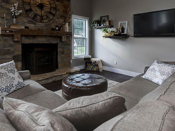 Amazing remodel in this adorable story and a half home on 2.3 acres in S. Ozark! So close to schools, shopping etc, but quiet country and cows nearby! Set back off the cul-de-sac on a soft hill, this darling home is sure to surprise. Covered from porch greets you as you enter into stylish country living - rich hardwoods, soft nuetral colors, white trim - so ''today's '' styling... stone fireplace in LR open to the brand new kitchen w gas range, lush granite, white cabinets - even a window seat! LOVE THIS! Formal dining currently serves as the little man cave and a main floor master suite with a killer walk-in shower! Upstairs 3 large bedrooms and a 4th adjuct BR and an updated hall bath. LL finished living area, office or play space, BA. HUGE storage/ workshop. Huge detached SHOP !