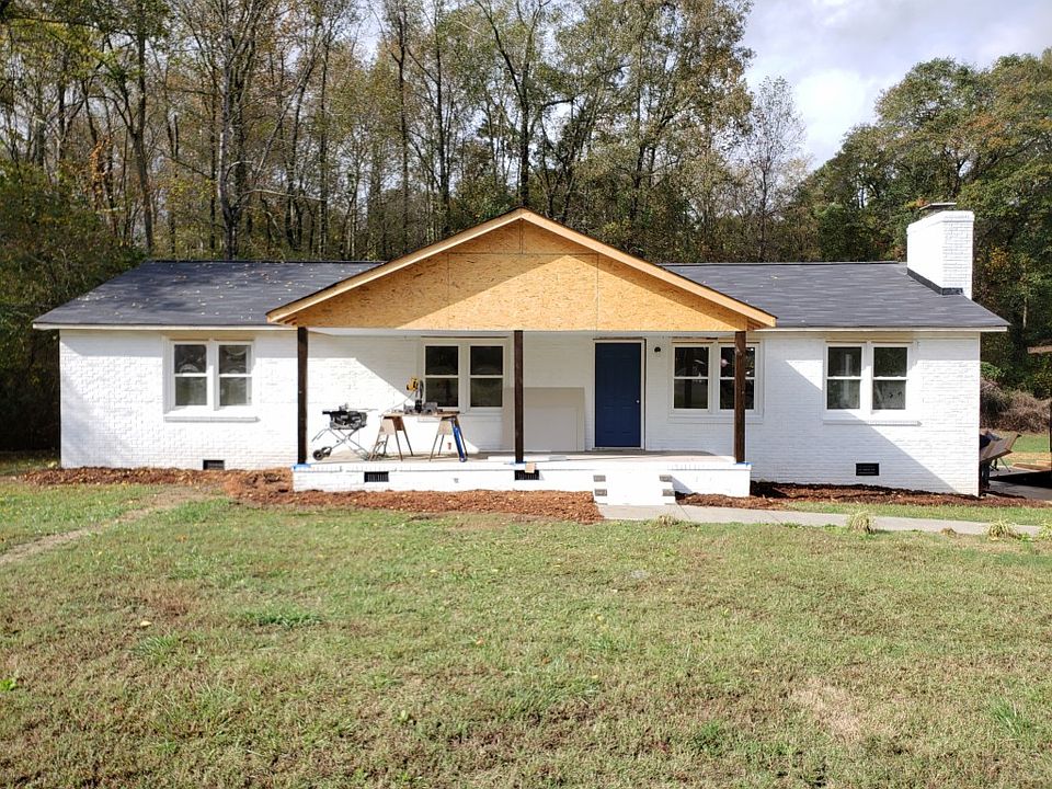 Looking for a home with everything new and no wait? This is it! This beautiful remodel features new everything, except the brick. The roof was replaced using architectural shingles and adding a covered front porch to enjoy your new open front yard with over 1.3 acres to enjoy. The windows are all brand new and energy efficient. The wiring, plumbing, sub flooring, heating and air system, bathrooms, and kitchen are all brand new also. The kitchen features granite counters and stainless appliances. Exposed wood and custom mantle on the wood burning fireplace just add to the modern look. Just off the kitchen is a large dining room and living area with open floor plan. The walk in laundry room doubles as a pantry and storage. The master bedroom comes complete with its own en suite bathroom and walk in closet. Don't just spend your time in the front yard or inside either. The bank yard comes complete with a patio with outdoor fireplace and plenty of wooded area for privacy or exploring.