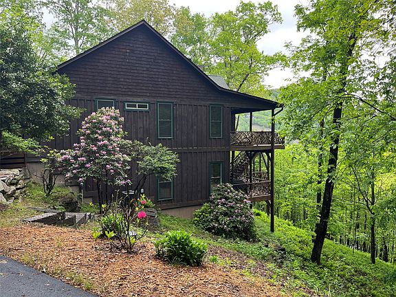 Spectacular mountain views at 4000 ft elevation will take your breath away! The southerly mountain view includes close and long range mountains, sheer rock cliffs and flatlands/lakes of SC & GA. Completely mesmerizing! This quintessential mountain home has a wonderful open floor plan (3,464 sq ft) built into the view with a sunny living area, 3 bedrooms including a generous master suite, 2 baths, kitchen and dining areas all on the main level. The master suite opens to a covered deck with a cozy sitting area complete with outdoor fireplace. The lower level has a large 4th bedroom, a beautiful family room, bunk room, hot tub, covered decks and more views. The location is very convenient, just inside the Bald Rock gate with a paved, level driveway. More than 4 acres offers wonderful privacy without being remote. You won't want to leave!
