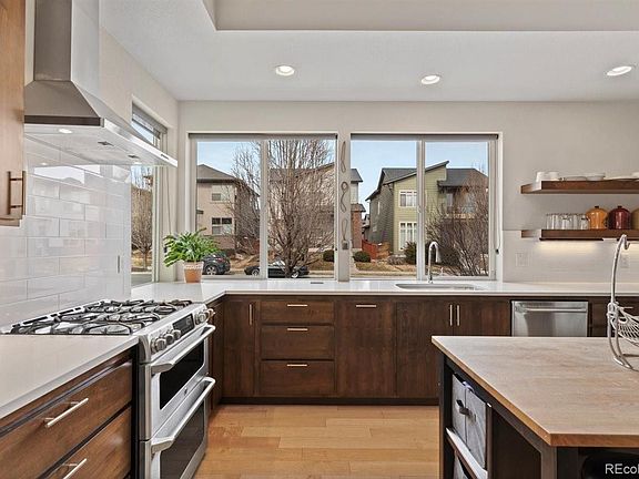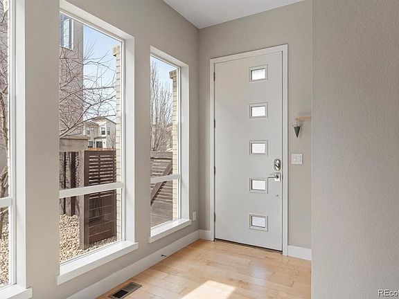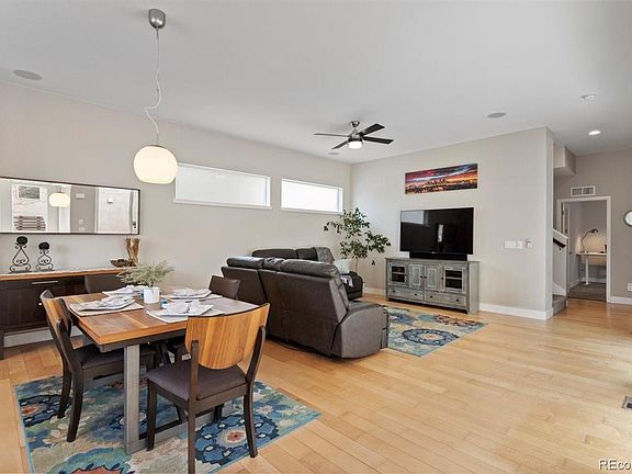 One of the most popular floor plans in Midtown and only 10 minutes away from Downtown Denver! This immaculate open layout Brookfield Signature 2 comes with hardwood floors, 10 foot ceilings, Sonos wireless HiFi system integrated on all levels of the home with your own volume control, wrap around separate dual vanities in the primary bathroom with two showerheads, expansive (23' x 19') patio that is also integrated with the Sonos system. There are 3 large sliding patio doors (71" w x 92") spanning 20' all opening to the patio that also has an artificial turf area for your pet. The primary bedroom boasts a large room along with an area that can be used as an office, workout area or a sitting room surrounded by large windows. The customized closets are on opposites sides of the room to truly have a separate space. The 2nd floor also comes with a guest bedroom that has a ensuite bathroom adjacent to the laundry room. The room on the main level is a non-conforming bedroom that can be used as a room or an office. The basement comes with 9' ceilings and a huge open area that can be used as a recreational room. You will also find another bedroom with a nicely sized custom closet and a full bathroom adjacent to the bedroom. Home comes with paid off solar shingle system and transferrable warranty. Midtown sits conveniently in northwest Denver with easy access to all major highways, paved running/walking/bikes trails and the G and B line light rail stations. Midtown is an active community with lots of events, two dog parks, a community garden, Trailside Academy K-8, Midtown Montessori Academy, community clubhouse, adjacent to Clear Creek trail and the popular, award winning, Bruz Beers Taproom. OPEN HOUSE SUNDAY, MARCH 19, 11AM-2PM.