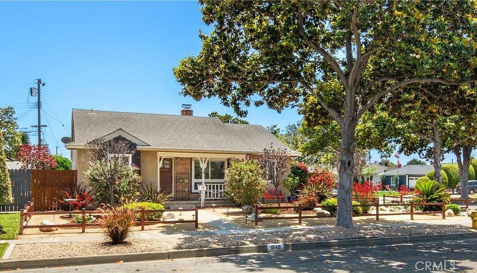 This Garden Delight on a premium corner lot awaits you! This Charming ONE-story single-family house (3br/1.5ba)is located in a tucked away and quiet Fullerton neighborhood. As you approach the house from the tree-lined street, your eyes will be met by a beautifully landscaped (and self-watering!) front yard. The butterflies and hummingbirds mingle among the multi-colored blossoms. Cross over the Front Porch and enter the front door. You will immediately feel the warmth and charm of an Immaculately Maintained home. Hardwood floors abound. The Living Room has a Fireplace and is OPEN to the Dining Room area. Lots of natural light with all the front windows! Enter into Kitchen from Dining room. Kitchen has beautiful Quartz counters and Travertine backsplash with Stainless Steel Appliances. The honey-colored kitchen cabinets are original. The remodeled full bathroom includes an elegant mix of glass and tile. Cool down to A/C or an energy-saving whole-house fan. The three bedrooms await your nightly dreams. Check out the dedicated laundry area. Step into the Large backyard and you will find your very own sanctuary: Enjoy the fruits of a mature orange tree, lemon tree, avocado tree, and “fruit salad” tree (you have to see to believe) which mingle with rose bushes, bougainvillea, and a bird of paradise too! Take in the serenity while reclining on the mini-deck or sitting around a patio table under a sizable trellis. The block-walled backyard is very private and ready-made to host family and friends for year-round BBQ’ing. Standing fire pit included! Great for entertaining! There’s more: a 580-sq foot walled-off side yard is ready for you to add a junior basketball net, greenhouse, tool shed, or whatever fits your needs; a two-car garage (with solar-powered attic fan); and side driveway for RV Parking. The property is located less than 1.5 miles from the 91 and 5 Freeways; 3 miles from Downtown Fullerton; and easy access to local shopping, banking, hospitals, restaurants, colleges, parks, and more. That is, if you choose to leave this delightful neighborhood and home. Washer/dryer and refrigerator are included. Make this amazing home your own! Move in ready!