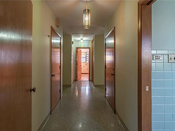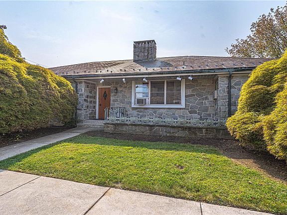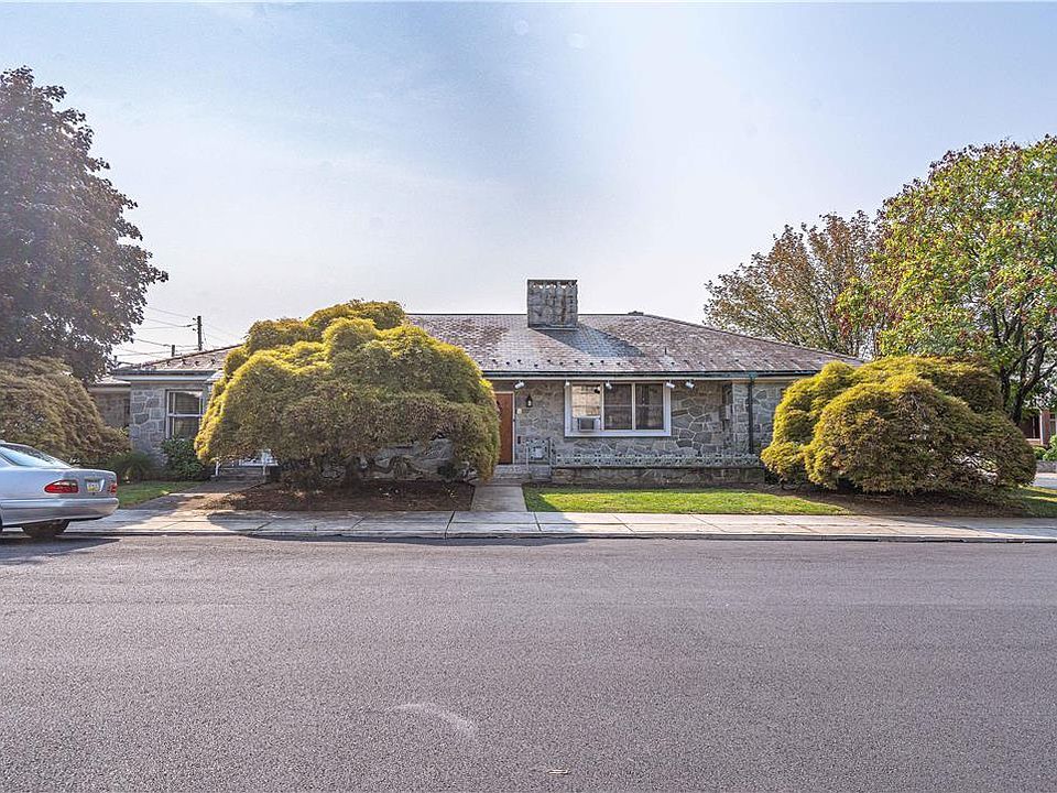 This house has never been presented to the market. 4 sided stone w/ slate roof, this ranch home is a fortress due to its solid construction. Built in the early 1960's it truly represents its era. Stunning Terrazzio tile graces the front foyer, hallways and former doctor's office w/ reception area. Large eat-in kitchen boasts powder coated cabinetry in stunning condition w/ a pass-through to large living/dining area complimented by octagonal leaded glass window. There are 3 bedrooms on the 1st floor w/gleaming hardwood, built-ins and a trundle bed. The former doctor's office has large room which could be a family room, a room with outside entrance and large storage closet. A full and 1/2 bath finish 1st floor. The basement is full foot print of house with paneled FR and large stone fireplace. Extra room in basement has 3 cedar closets and could be bedroom. Large storage area w/ 1/2 bath finish the basement. There is 2 car built-in garage and fenced yard. Estate and sold as is.