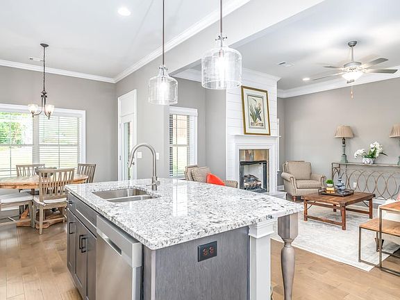 Five bedrooms and generous storage space make the Endsleigh floorplan a perfect match for a big or growing family. Not only does the Endsleigh have an impressive great room, it also includes a spacious kitchen with its own convenient breakfast area. The beautiful granite countertops and gleaming cabinets complete the sophisticated look, while the large island in the middle provides room for preparation and entertaining as it is open to the great room. This floor plan features a foyer entrance and flex room that can be used as a formal dining room or office space. The huge master bedroom is located accessibly on the first floor where it connects to a master bathroom complete with separate shower and garden tub along with a double vanity. The master bath then connects to the great walk in closet that is conveniently located near the sizeable laundry room with plenty of space for a washer and dryer along with other cleaning or laundry supplies. A two car garage completes the first floor. Up the staircase to the second floor there is a common area loft that could be used as a sitting or playroom. Bedrooms two, three, and four include huge walk in closets, while the fifth bedroom still has a large closet with plenty of space for clothes, shoes, and more. Two full bathrooms complete the second floor. The Endsleigh is a modern and thoughtful floorplan that caters to privacy and togetherness all in one great house.