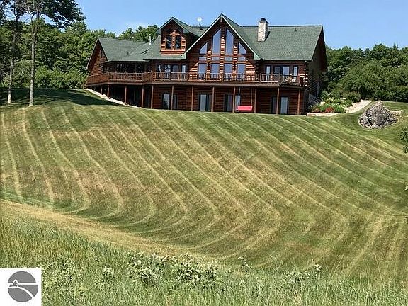 Beautifully landscaped 5,000 sq ft, White Cedar Log home on 60 private acres with panoramic views of Lake Michigan. Located on rolling meadows just a few minutes south of Frankfort, this meticulously maintained log home has something for everyone. From a chef’s dream kitchen that showcases floor to ceiling cabinets, expansive natural stone counters, bird’s eye maple flooring throughout the main level, and multiple fireplaces that offer the all-encompassing Northern Michigan lifestyle. The main level offers a walkout to both large open extensive red cedar decking with screen and glass porch areas. Main level master suite and large laundry area. Large bonus space above the main level attached two-car garage. Large Pole Barn and spacious workshop that includes attached covered firewood storage. Make your own cider with your own private apple orchard, or take a stroll on your own hiking trails that traverse through the gently rolling terrain that includes 35 acres of hardwoods. Full mineral rights are included. Short drive to Arcadia Dunes, CS Mott Nature Trails/preserves, Arcadia Bluffs Golf Course, and Crystal Mountain Golf and Ski Resort.