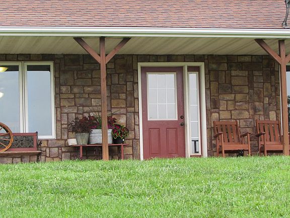 Country Living with incredible view of lush pasture, partial Earth-berm home features 4 BR, 3 BA, custom Oak cabinets, dining room, open to great room features rock/propane fireplace, large master suite with 5x10 walk-in closet. 2nd story features 2 BD, 1 BA and family room, walkout to back yard, 2-car attached garage, 30x40 shop/living quarter/older barn/outhouse. Add'l 28 acres m/l available.