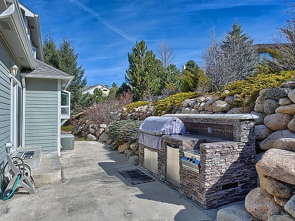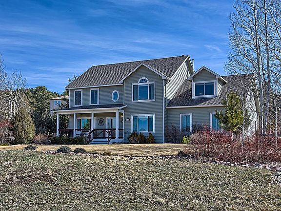 Enjoy serenity from this beautiful Cape Cod style home w/ a covered front porch that has panoramic views of Lake Woodmoor and Mountains ~ located in Woodmoor, an easy commute to both Colorado Springs & Denver. Inside: hardwood floors adorn the main level, the two-story foyer gives light & height to the space. An office w/ French Doors, formal dining room, a spacious living room w/ gas fireplace, & main level bedroom w/ full bath make thoughtful use of space. Remodeled eat-in kitchen w/ custom 42" hickory cabinets, island, slab granite countertops, GE Profile stainless appliances, and access to the gorgeous back patio that features it's own kitchen & outdoor grilling station. The Fire Magic grill is plumbed for gas making for the best of indoor and outdoor entertaining! Upstairs, the master bedroom is a true sanctuary, featuring an unparalleled lake and mountain view, 5-piece bath, and a bonus room that can be the perfect craft room, office, nursery, etc. The other two bedrooms and full bathroom upstairs complete the space. New carpet, new interior paint, & updated bathrooms give the home a fresh feeling so you will be ready to just move in. Outside: there is a side yard that is set up with a dog run, professional landscaping, a common side area that will not be built on. This home has everything you have been looking for in a location second to none! Experience the best of living in this gorgeous Monument home!