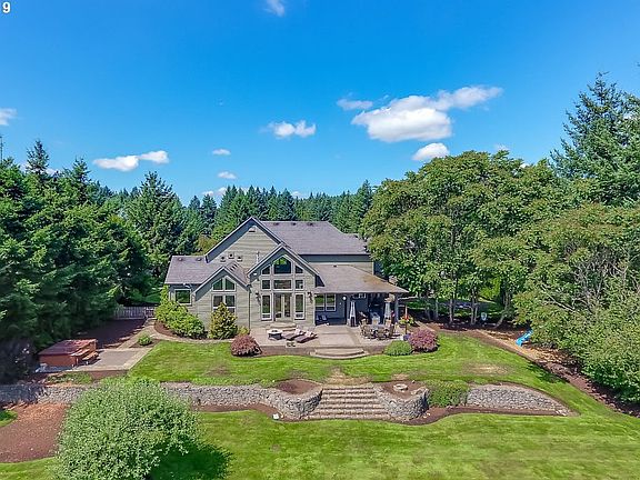 Beautiful custom built home on well-manicured 4-acres, surrounded by wine country. Home boasts exceptional craftsmanship and high-end finishes. Chef's kitchen includes a large granite slab island. Abundant natural light and sweeping views out every window. Master Bedroom on main with private spa-like bath and views of property. Home includes large large covered back patio, a hot tub, and huge professionally landscaped backyard with hand-built stone retaining wall. Located in the highly-rated Sherwood school district. As the second owners we replaced the carpet in October 2019 prior to moving in. We are currently in the process of updating our home throughout and more details will be posted as items are completed. 2020 updates included the removal of the cherry hardwood floors and stair handrail and replacing them with new dark walnut color hardwoods/handrail, and new iron balusters. All the wire shelving was removed from every closet in the house and replaced with custom wood shelving maximizing usable space for each closet. Upstairs interior windows were only trimmed in sheetrock when the home was initially built, and new matching trim (to match downstairs windows) was added to every upstairs window. New interior paint throughout. New matching exterior paint for house, shed, chicken coop, and bus shelter. Tile backing for TV removed from two story fireplace and filled back in with San Francisco Cobblestone to match existing stone, and custom wood mantel added to fireplace (there was no mantel previously). Cabinets in laundry room moved to better position them, and hanging racks and extra shelving added. New exterior door with windows (previous door had no windows) from laundry room to back patio added. Blue pine accent wall added to laundry room with new light fixtures and utility sink replaced with a quartz sink and tile countertop replaced with quartz countertop. Tile countertop in bathroom off of laundry room/garage replaced with a matching quartz countertop of the laundry room and new light fixtures added. New faucets added to both laundry room and same bathroom. Electric cooktop removed from kitchen and gas line run to new gas cooktop. Original 7 ft. front door removed and added an 8 ft. front door with side lights.