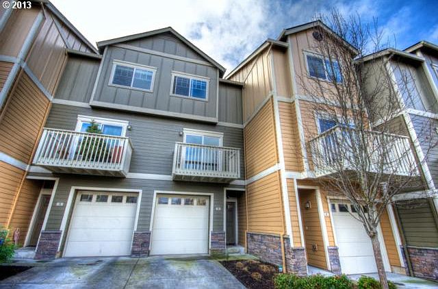 Cute and Clean townhouse-style condo in very convenient location...close to Max line and Tri-Met! Upgrades include granite tile counters in kitchen, Stainless Steel Appliances, Double sinks in master, gas fireplace, and more. Great open layout concept: kitchen opens to dining and living room. Great Bonus room space behind garage. Office? Playroom? Storage? Not a short sale!
