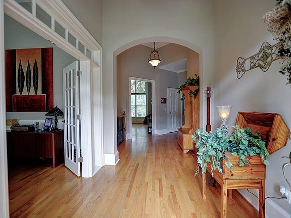 This home has a great open floor plan with coffered ceiling in great room! Beautiful stone fireplace with built in bookcase. Hardwood floors though out. Large kitchen with island, stainless steel appliances, walk-in pantry/laundry room, view to great room. French doors to the dining room (or office). Large master bedroom with vaulted ceilings and huge walk-in closet. Full finished terrace level with an additional stone fireplace, as well as, new carpet. An abundance of storage in unfinished area of basement. Beautiful pool on private cul-de-sac lot.