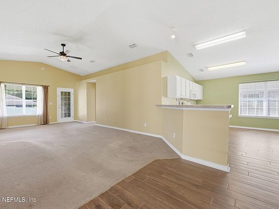 This charming home is ideally located near Ronnie Van Zant Park and the new First Coast Expressway! The kitchen features beautiful wood-look tile flooring, a spacious pantry, casual dining area, and comes fully equipped with all appliances. The primary suite offers a walk-in closet and an updated bath. The 4th bedroom makes a great office or flex space. The covered back porch overlooks the spacious partially fenced backyard. Enjoy the community pool and playground in this wonderful neighborhood! Buyer to verify all measurements.