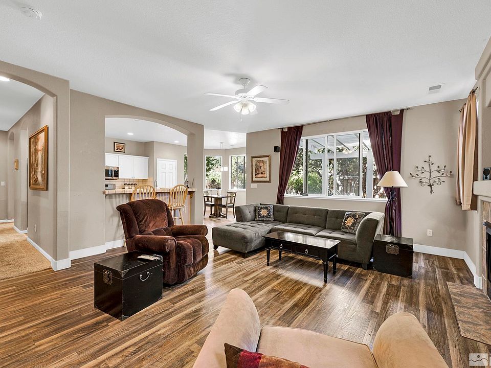 Located in highly renowned South Reno! 3Bed/2Bath/2Car/Single story. 1849 Jamboree Drive presents an unparalleled opportunity to experience Reno lifestyle at its finest. The outdoor living spaces are an oasis of serenity, designed to provide the perfect backdrop for alfresco dining, entertaining, or simply enjoying mature trees and shade in the warm summer. Close proximity to schools, upscale shopping, dining and recreational activities. This home offers the perfect balance between convenience & privacy., 1849 Jamboree is a well-loved gem, owned by original buyer. It's located in a sought after community of Double Diamond. The open-concept design flawlessly integrates the living, dining and entertaining spaces, making it ideal for hosting gatherings or enjoying quiet evenings with loved ones. The Primary Suite is a tranquil haven, featuring a spacious layout, neutral carpets, and a spa-like ensuite bathroom. Unwind in the luxurious soaking tub or indulge in the walk-in shower. Enjoy a cup of coffee off the backyard access patio where relaxation and rejuvenation are paramount. The outdoor living spaces are an oasis of serenity, designed for backyard entertaining. It's a private retreat in the heat of the summer! If you're a "Foodie", these fruit trees will fit the bill! This backyard is screaming for a summer soiree or just a peaceful moment with a cup of tea. This is a Chase Ready Home!! Pre home inspection has been performed and available upon buyer's request. LOCATION!!!! LOCATION!! This home is walking distance to four parks (one with a dog park and splash park). Water ways with walking paths connect these parks. (Great for bike riding, dog walking or bird watching). Walking distance to both the Elementary and Middle schools. Minutes to freeway, airport, multiple grocery stores.
