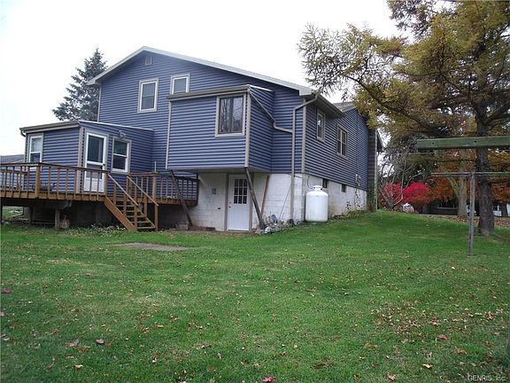 Custom built home with loads of built-ins on one acre. Upgrades include roof 3 yrs new w/tear-off, windows & siding 2 yrs new, pellet stove (could convert to wood), enclosed porch to deck, built-in entertainment center, walk-out basement, outdoor smoker & fireplace, detached large shed, generator. Garage turned into master bedroom. A lot to offer for price!