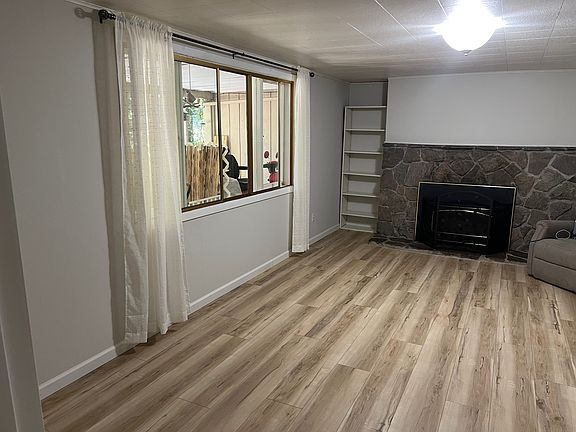Cute daylight basement with separate entrance down lit pathway. Has one large bedroom with French doors with access to the outside. It also has a smaller bedroom in the back with large closet. Flooring is new, waterproof and scratch resistant. It has a walk-in shower that could be good for a person in a wheelchair. Has a great little gas fireplace in the living room and built in shelves to put your books and things. There is a small little refrigerator, but you can also use the large freezer in the garage. The kitchen is a little kitchenette. It does not have a stove, but you can use a convection oven or air fryer just fine. That will be provided for you. ALL Utilities are included. That includes cable TV with streaming services. Washer and dryer in the unit. Dogs and cats welcome. Pros: West Linn is the safest city in Oregon. It's surrounded by trees and wildlife with a seasonal creek that runs through during the rainy season. Dogs and kitties are more than welcome. It is accessible to a person in a wheelchair. There is a ramp that leads into the bedroom but it can be removed. Cons: It is the downstairs to a home so there will be some noise. Although it is a daylight basement, it is considered a shared living space technically with a private entrance. Would love to have a person who enjoys gardening. There's lots of property and a large greenhouse you could use. It really is too small for more than two people so please keep that in mind. I would also entertain this space as an assisted living situation for an extra fee. That would include grocery shopping, light house, cleaning, laundry, food prep, doctors visits, etc. I'm open to ideas and working with you.