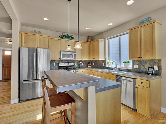 This cozy and well-lit multi-level home features hardwood floors across the main level from entry foyer, through the kitchen, and into the dining room. The kitchen includes tile countertops, stainless steel appliances, and a large island. Upstairs, enjoy the large master suite complete with a tiled shower, soaking tub, split twin vanities, and walk-in closet. Notice the newly-painted exterior from the cul-de-sac outside the front door. Located near Big Sky Park, Pine Nursery, the Forum Shopping Center, and the St. Charles Medical Center, this home provides easy access to a number of convenient amenities.