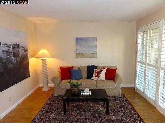 Updated Townhome in Sunset Park. Popular location, close to Bart, Freeway, Shopping & Iron Horse Trail. New furnance updated kitchen & baths, plantation shutters, laminate floors, no popcorn ceilings & sunny pation. Carport right behind patio with extra storage. Great 4 first time home buyers.