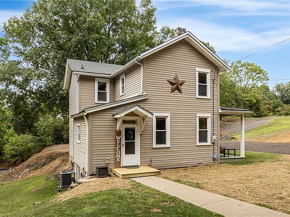 Welcome to your serene farmhouse retreat in Economy Borough! This inviting 3-bedroom, 1.5-bathroom home is nestled on a generous 6.24-acre lot, offering ample privacy and tranquility in beautiful Beaver County. A spacious driveway provides plenty of parking, complemented by a secondary driveway cut in, perfect for additional vehicles or equipment to an already existing detached garage. Significant earthmoving has been done to flatten the yard, creating a versatile outdoor space ideal for recreation, gardening, or future expansions. The farmhouse itself exudes rustic charm with modern comforts, featuring a welcoming front porch, cozy living spaces, and a functional kitchen. The expansive land offers endless possibilities for outdoor enthusiasts, hobby farmers, or those simply seeking a peaceful escape. OGM rights transfer to new owner. Don't miss this unique opportunity to own a piece of paradise in Economy Borough, where privacy, space, and potential are endless.