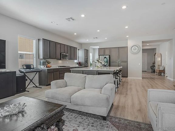 Otay Ranch Living in Montecito at it's finest! This gorgeous 5 Bedroom 4 bath home is move-in ready! Open-concept living, with a massive Kitchen Island perfect for entertaining, opening into a Large Family Room. It features a main floor Primary Suite with gorgeous EnSuite bath and walk-in closet. Upstairs you will find a massive Loft perfect for an entertainment room, a large Junior Master Suite with EnSuite bath and walk-in closet. 2 more large size rooms on the 2nd floor, and a 5th bedroom on the main floor. The house also features a formal dining room area, Solar Panels, Tankless Water Heater, Alkaline Water System, and a Water Filtration System. 2 Car Garage with built-in overhead storage & a Tesla Charger. Landscaped front & backyard completes this amazing property! Close to multiple amenities and .5 miles from the Elementary School. This home has access to Montecito Clubhouse & Pool, and Summerland Park & Pool. Multiple parks are nearby: Meadows & Jacaranda Park. This is the house you’ve been waiting for!
