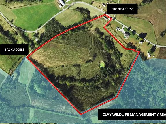 Rare opportunity to own 25.75 acres of gently rolling land, bordered on two sides by the Clay Wildlife Management Area. This property is a slice of paradise, where you can relax and indulge in the natural beauty or venture into Clay's vast 8,978-acre expanse. With multiple building sites, the land presents endless possibilities. Previously occupied by a mobile home with utilities, this property is ready for your dream dwelling. The prime building sites boast breathtaking views that extend for miles, providing an enchanting backdrop for your future home. This expansive land caters to a variety of interests and activities. Whether you're a hunting enthusiast, avid hiker, horseback rider, camper, or simply someone seeking tranquility, this property is an ideal haven. Embrace the opportunity to indulge in wildlife viewing, bird watching, and shooting sports, or simply bask in the serenity that surrounds you. What's more, with two access points, you have the option to potentially sell a portion of the property while reserving the choicest sections for your personal use. Act now and seize this remarkable chance to own a slice of paradise.