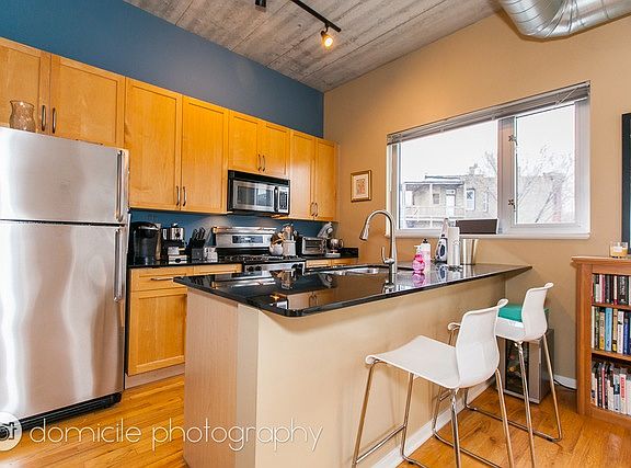 Gorgeous unit in prime location! 2BR/2.5BA duplex with hardwood, granite, stainless steel appliances, 2 balconies, in unit washer/dryer, additional storage unit, 1 outdoor parking space included, concrete ceilings, tons of natural light and dual vanities in master bath! Won't last long! MLS BROKER'S RECIPROCITY * FULTON GRACE Monthly Rent Incl:Water, Parking, Storage Locker