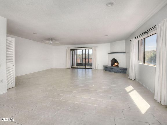 BEAUTIFULLY updated with a clean, crisp, modern edge, this gorgeous townhome backs up to nothing but MOUNTAINS! A charming front courtyard welcomes guests and provides the perfect sunny spot for morning coffee. Stepping inside, glistening white tile flows throughout the great room and reflects the natural light. A magnificent beehive fireplace anchors the room and provides warmth and ambience. Large sliders invite you into the Arizona room and out onto the back patio where the mountains are the backdrop while you host family and friends! The recently updated kitchen will impress with its sleek black counters, gleaming appliances and modern white cabinets. A spacious den sits off of the great room and offers pocket doors to hide your projects when guests arrive. Your primary suite is complete with a huge walk-in closet, an updated spa-like bath, and sliders leading out onto the the patio and those spectacular views! The guest suite offers plenty of space and its own bath for privacy and comfort for your winter guests. If you've been looking for a home with nothing left to be done, and offering beauty, privacy and mountain views, then you have found your sanctuary!