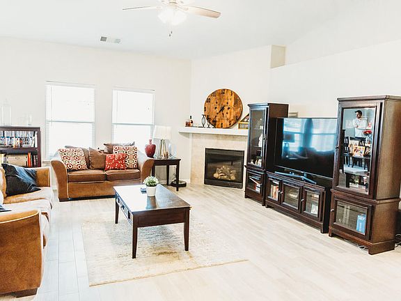 Move-in ready 4/2! This immaculate home has been well cared for and is ready for a new owner. Phenomenal curb appeal with a low maintenance well manicured front and stamped concrete walkway. The moment you step into this freshly painted home you will fall in love with the open concept living space. The tall ceilings, beautiful gray toned flooring and welcoming fireplace give a relaxing and warm feeling. Do you like to entertain? This space offers plenty of room for year-round entertaining with a large kitchen island that has plenty of room for barstools and counter space, new appliances, pantry, laundry space and a breakfast nook. Three spacious bedrooms and master suite with a relaxing soaking tub!