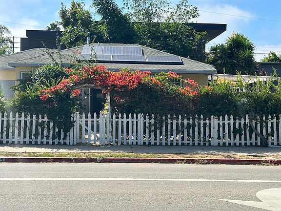 This charming traditional home in Mar Vista has a classic look with its white picket fence and original hardwood floors. It has also been updated with solar panels and new electrical and plumbing systems. The lush front yard creates a sense of privacy from the nearby busy streets. Inside, the many windows brighten up the living room, kitchen, and dining areas. There are two bedrooms, one with direct access to the backyard, and both have their own closets. There is also a separate laundry room. The spacious backyard has a garden shed and provides a peaceful oasis from the hustle and bustle of nearby Abbot Kinney and Venice Beach. Walgrove Elementary and Mark Twain Middle Schools are both located on the same street, just a few blocks away. The driveway has easy access from and to Walgrove Avenue.