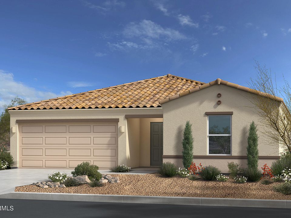 This beautiful upgraded single story home features an open concept floor plan that includes 9ft. ceilings and a great room that leads you out to a covered patio. The Kitchen offers 42-upper cabinets in linen with crown molding, center large island, silestone countertops, lower cabinet pull-outs and undermount sink. Whirlpool stainless steel appliances including electric range, side by side Refrigerator, microwave and dishwasher. Additional features added are reverse osmosis system and soft water system. The primary bedroom sits at the back of the home includes a walk-in closet, and the primary bath tub/shower combo with raised vanity and dual square sinks. 2-inch faux wood blinds in bedrooms, ceiling fan prewires in great room and all bedrooms.