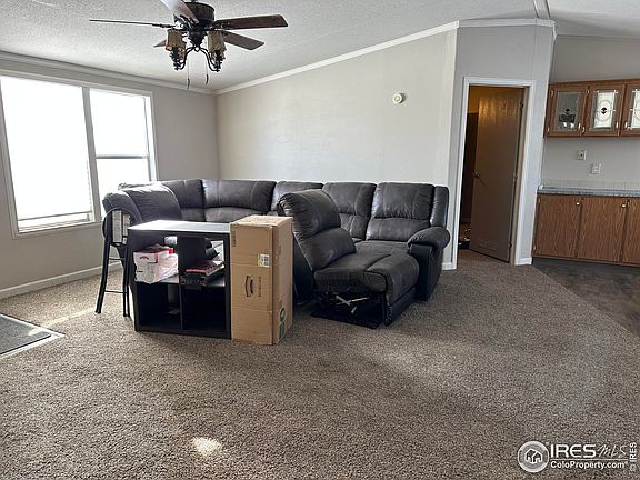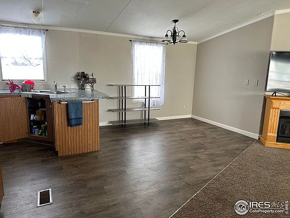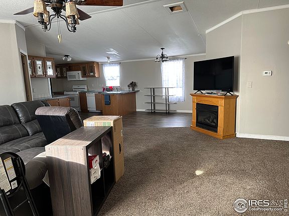 BACK ON THE MARKET DUE TO NO FAULT OF THE SELLER. Buyer lost his job and did not qualify for loan. Welcome to country living. This purged, manufactured home sits on 2.38 acres, perfect for large animals and big toys (horse, RV, trailer, etc). This 3 bed 2 bath ranch style home has newer flooring throughout, the gally kitchen is well appointed with a gas stove and a spacious living room with a gas fireplace makes this a cozy country get away. The over sized 2 car detached garage, has room for 2 large vehicles and extra storage. On the back half of the property is a shed, perfect for additional storage. This property is approximately 5 miles W of Fort Morgan. The roof was replaced in 2021.