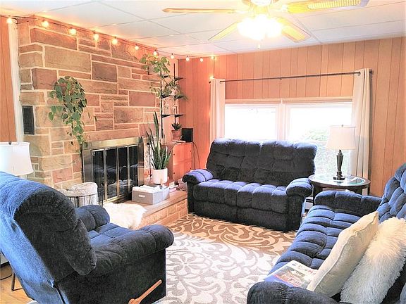 Lovely 3-bedroom 1-bath ranch on 5 acres with a small pond. Stone propane fireplace in living room. Fully-applianced kitchen is open to dining room. Main bedroom has a captive bedroom which can be an office. Partial basement with woodburner. 1-car detached garage, springhouse with water filter, and two sheds (one with electric). This is the country place you've been looking for!