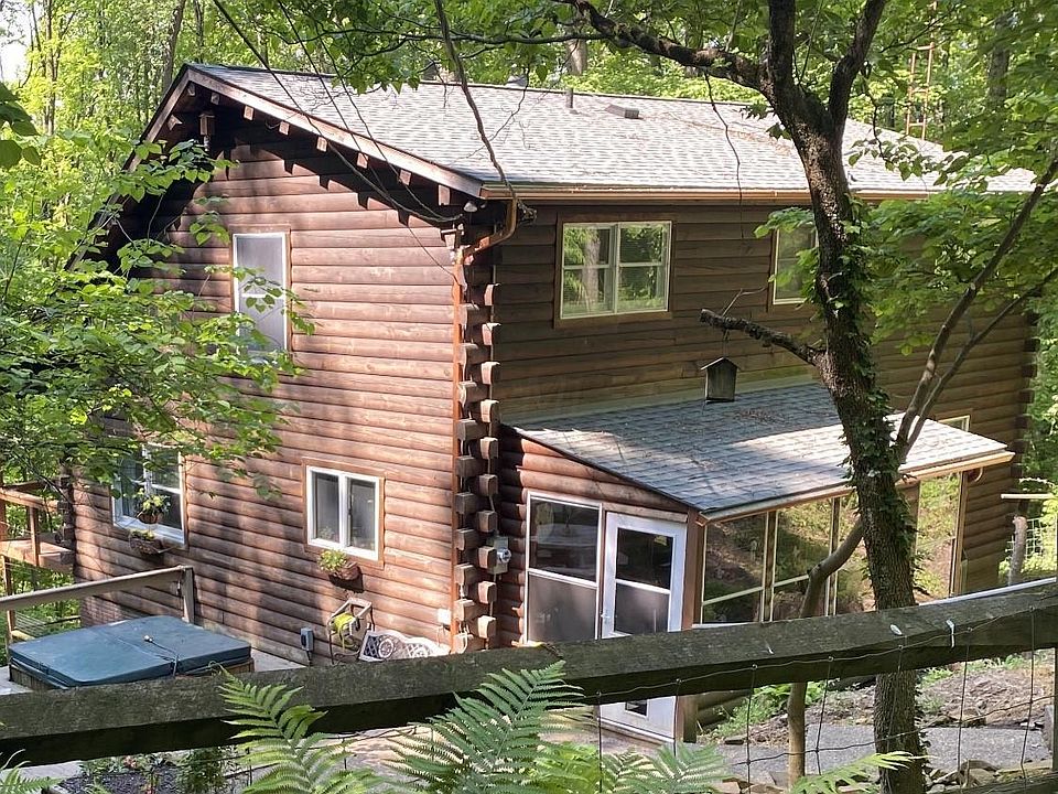Showings start 6/10. Secluded Log home on 1.25 Private wooded acres just outside of Gambier. 1st floor features a Great room with Woodburning fireplace and vaulted ceilings, Den, Kitchen with updated appliances and opens to the dining area. Half Bath and 1st floor laundry area. 2nd floor features the Owner's bedroom, full bath and an additional bedroom. Finished walkout basement and storage area with additional washer/dryer hook up. Enjoy a nice covered porch and a peaceful deck overlooking the wooded sanctuary above the banks of the Kokosing River. New Roof and gutters 2018, new kitchen flooring 2019. Minutes to Gambier, Mt. Vernon and local parks and walking paths