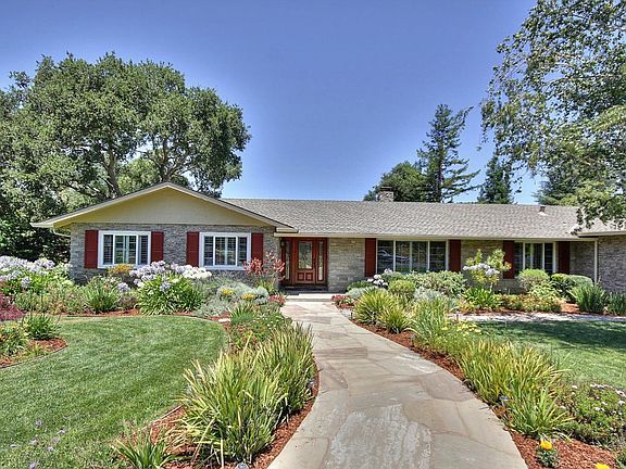 Fabulous twin creeks location! Perfect single story w/ lg picture windows, spacious rooms & wonderful finishes-handscraped hw flrs, travertine tiles, slab counters! Gourmet kitchen, stained & glazed cabinetry- handsome dual oven viking range! En-suite bdrm w/ private entrance! Spacious laundry rm & 2nd d/w! Over 1/2 acre flat lot! Incredible gardens- wow, what a backyard! Pebble tec pool, outdoor fireplace, slate & stamped concrete patios perfect for al fresco dining! Close to saratoga & lg- top lg schools