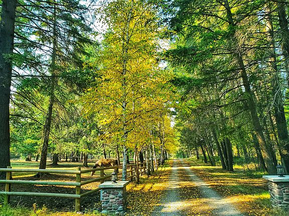 Stunning setting amongst the towering pines. Enjoy the convenience of this 15 acre parcel in Creston with easy access to Bigfork, Kalispell and Glacier National Park. The rolling terrain is already set up for horses with two fenced pastures. The house sits at the top of the property and features over 4000 sq ft of space. Large open dining/living/kitchen centered around a large stone fireplace. Large open kitchen offers plenty of space for entertaining. The master suite offers a soaking tub and gas fireplace. There are two additional bedrooms with a bathroom and then more space in the lower level that is partially finished. Enjoy a detached 2 car garage/shop with attached 1 bedroom guest house with full kitchen and awesome covered deck out the back. There is a tack room by the pastures.