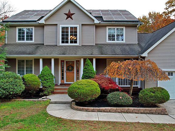 5 ACRES!! Large 2,400 sqft, 2 story, forever home, features: large driveway that can fit 5+ cars, covered front porch, grand entryway with sprawling staircase and soaring 10ft ceiling, large kitchen with white cabinets, stainless teel appliances, granite counter tops, center island, large living room with cathedral ceiling, floor to ceilings windows for natural light, wood burning fireplace, family room or dedicated dining room, main floor powder room, main floor bedroom or office, laundry room off the 2 car attached garage, bedrooms upstairs, three in total, two large beds with full bath in hallway in between, and of course the large master bedroom with cathedral ceiling, large walk-in closet, and attached full bath with shower and large jacuzzi tub, full basement with high ceilings, finished room with carpet, potential for man cave or bonus flex room, outside we have the covered rear deck, pavered patio with built in stainless steel grill, large above ground pool, shed, large backyard surrounded by tree's and nature on all sides, 5 acres of paradise