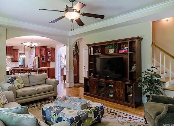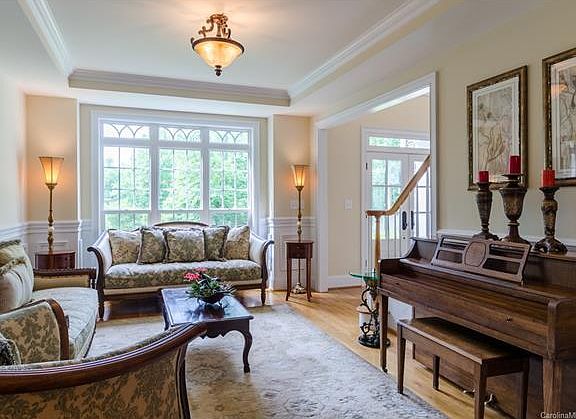 Private and peaceful custom home. Beautifully designed open concept with custom cabinetry, granite countertops and oak hardwood floors throughout. Extensive crown molding, recessed ceilings, chair railing in all bedrooms & wains coating. Master bedroom has an attached private sitting area with fireplace. This home sits back from the street with "English Country Garden" landscaping with a 30ft covered back porch. Accredited Iredell school district and low Iredell taxes, minutes to Davidson.