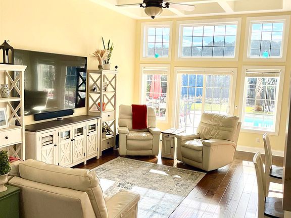 Nestled in the desirable Bluffs community in Carolina Forest, this stunning waterfront home offers a luxurious lifestyle aboard the Intracoastal Waterway. Boasting four bedrooms and three baths, the first-floor features a spacious master suite with his and her walk-in closets, a beautiful oversized tiled shower with dual controls and a ceiling rain shower head, along with two additional bedrooms and a large suite, perfect for family or guests. The home showcases elegant upgrades including cathedral ceilings in the foyer, a coffered ceiling in the living room, a formal dining area, and a roomy, well-appointed kitchen with granite countertops, custom cabinets, a breakfast bar, Bosch stainless steel appliances, and a trash compactor. Hardwood and tile floors, ceiling fans, and numerous tinted glass doors and windows flood the space with natural light, creating a bright and inviting atmosphere. The living room opens seamlessly via sliding glass doors to an outdoor oasis featuring a covered back patio, a saltwater pool with a 50' x 50' buildup, and spectacular waterway views—perfect for relaxing, entertaining, or enjoying tranquil mornings with coffee or afternoon wines. Additional conveniences include an oversized 2-car garage, first-floor laundry, and plenty of storage. The community itself is a true lifestyle destination, offering a main clubhouse with pools, tennis and basketball courts, a kids' play area, and a secondary clubhouse known as the boathouse on the waterway. Boating enthusiasts will appreciate the secured boat storage, boat ramp access, and two boat lifts included with the home. Located within top-rated schools and featuring a vibrant social atmosphere, The Bluffs provides a perfect blend of luxury, comfort, and recreation. Don’t miss the opportunity to own this exceptional waterfront residence—schedule your viewing today and experience the best of Carolina Forest living.