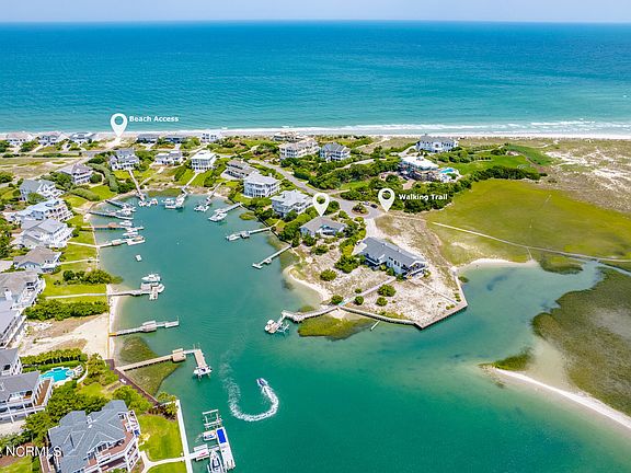 Sought out sound front lot location on protected bay with over 250 ft of water frontage per original plat. Panoramic views of the southend of Figure Eight Island. Enjoy sunrise and sunset views. Easy access to the beach and tidal marsh. Pier and floating dock in place with potential for expansion. This beach home features 4 bedrooms, 3.5 baths and two spacious living areas. Single oversized garage to store all of your beach equipment and ample parking. Enjoy the summer season now and dream up your future remodel or new home design.